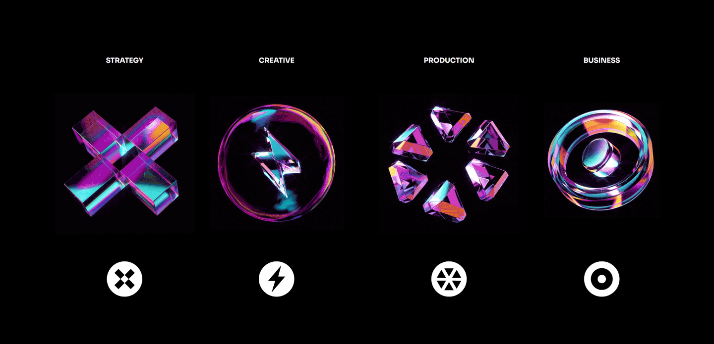 OUR NEW VISUAL IDENTITY BALANCES BLACK AND WHITE WITH FLUID GRADIENTS — A COMBINATION THAT EMBODIES BOTH MODERNITY AND ADAPTABILITY. THIS CONTRAST SYMBOLIZES HOW 3C CAN DELIVER DIFFERENT PROJECTS FOR DIFFERENT NEEDS, ALWAYS SHAPING OUR WORK TO EACH CLIENT. WE ALSO INTRODUCED ICONS THAT REPRESENT OUR DIFFERENT CAPABILITIES, SHOWCASING HOW ALL ARE CONNECTED WITHIN ONE INTEGRATED TEAM.